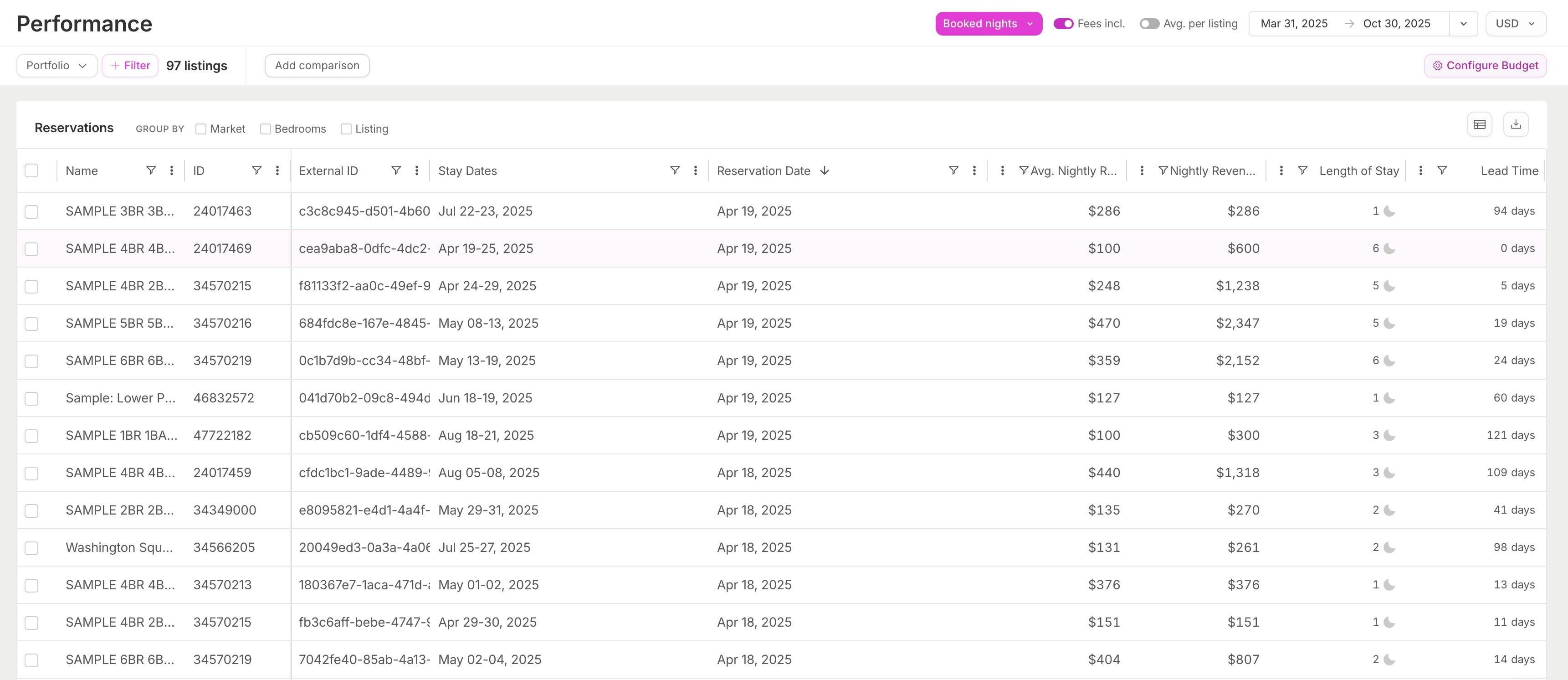Your comprehensive Booking Table will be instantly generated on our Performance Page, giving you immediate access to actionable insights about your reservations, stay patterns, and revenue trends—all automatically kept up-to-date as new bookings arrive.